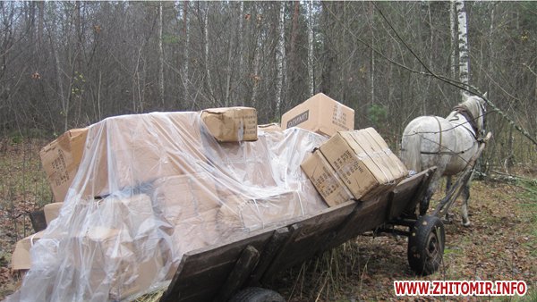 Житомирские пограничники по имеющейся информации на участке ответственности отдела пограничной службы «Копище» в 200 метрах от линии государственной границы, 5 октября, задержали украинца, который на гужевой повозке пытался незаконно переместить в Республику Беларусь около сотни весов.