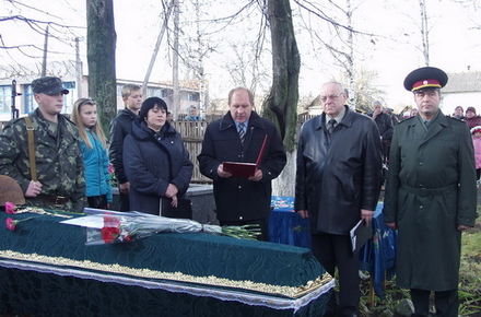 У перепохованні взяли участь представники районної влади, координатор по зв’язках із країнами СНД і Балтії Міжрегіонального громадського фонду увіковічення пам’яті загиблих при захисті Вітчизни Андрій Лященко, представник Всеукраїнської громадської організації «Закінчимо війну» Віктор Потапенко.