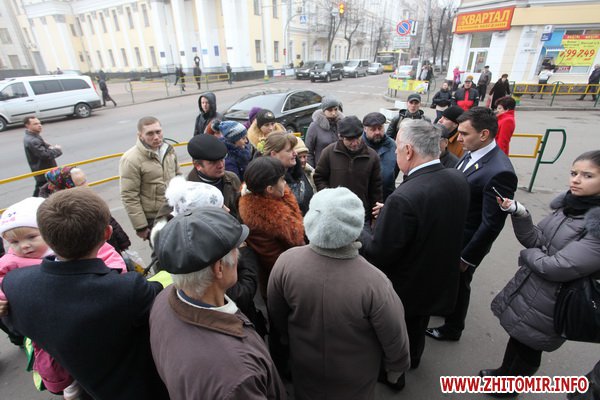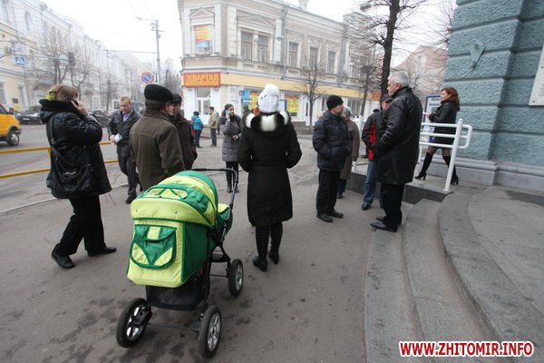 Около 20 жителей микрорайона Полевая пришли под стены Житомирского горсовета защитить сквер, часть которого передали под строительство автосервиса.