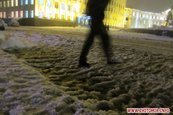 «В связи со сложными погодными условиями в течение ночи с 5 на 6 декабря на улицах Житомира работала противогололедная бригада уборочной техники в составе: 6 пескоразбрасывателей, 3 плужно-подметальных машины, 5 подметальных тракторов, 1 грейдер, 1 экскаватор. За ночь работы использованы 304 тона пескосолевой смеси. 6 декабря для обеспечения беспрепятственного движения автотранспорта на улицах города работает 18 единиц техники, выполняется плановая посыпка противогололедными материалами мостов и путепроводов, подъемов, спусков и улиц, по которым проходят маршруты общественного транспорта», - сообщает пресс-служба Житомирской мэрии.
