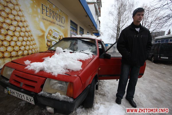 27 декабря на ул. Витрука в Житомире упавшая с крыши 5-этажного дома глыба льда повредила легковую машину.