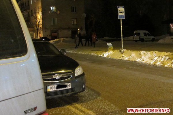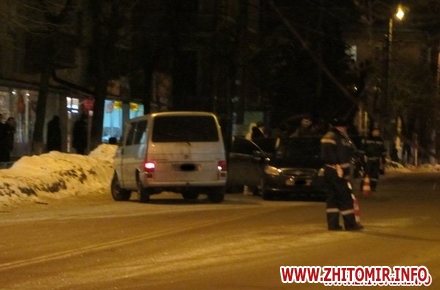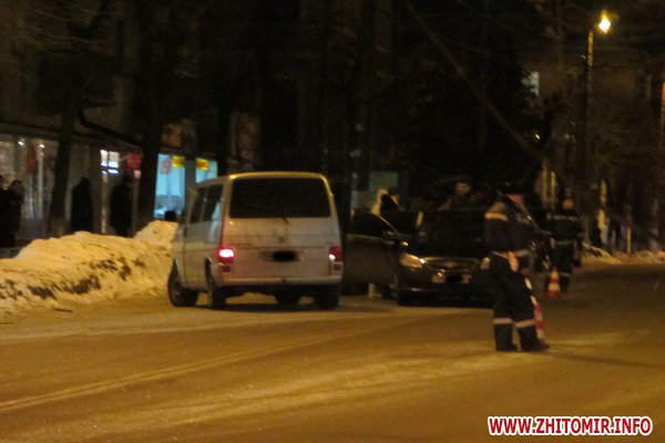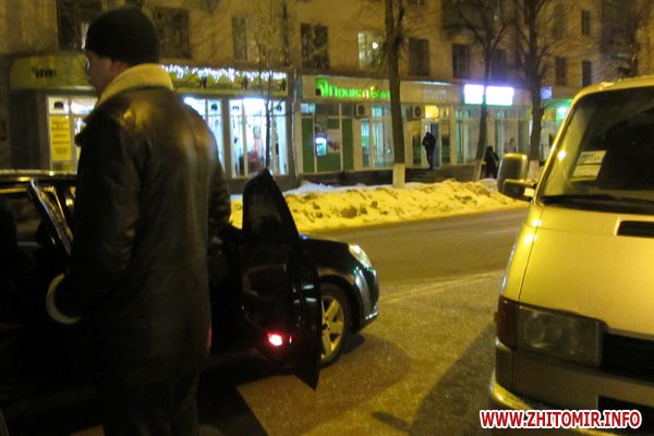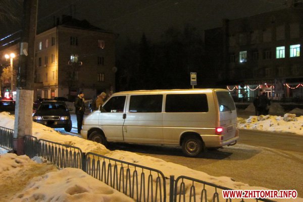 Вечером 9 января в центре Житомира белый бус заблокировал темный Шевроле, который двигался по ул.Театральная.