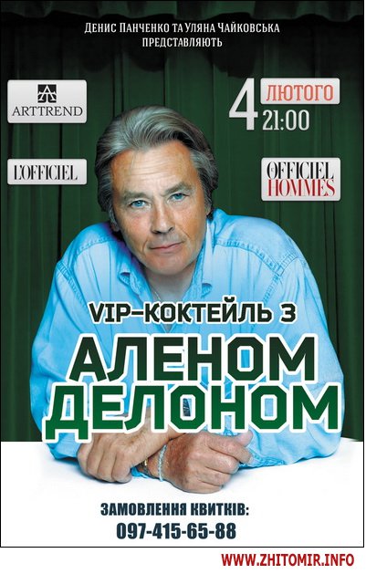 Как сообщили сайту Афиша Житомира организаторы, в Житомире 4 февраля состоятся две встречи с Аленом Делоном.