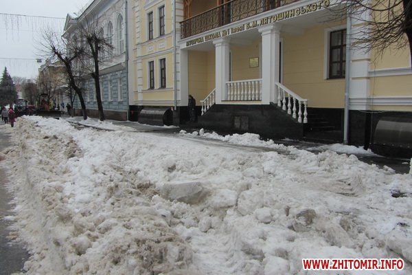 «Вывоз снега с улицы Михайловской коммунальные службы города начали 31 января 2013. Сегодня на пешеходной улице работает автогрейдер, снегопогрузчик, подметальный трактор и 7 автосамосвалов. До 12.00 1 февраля с ул. Михайловской коммунальными службами города вывезено около 200 тонн снега», - сообщает пресс-служба Житомирской мэрии.