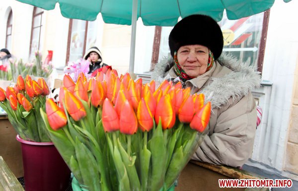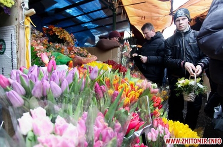 Житомирские мужчины не пасут задних. Они заполонили цветочные базары, подыскивают лучшие цветы для своих женщин.