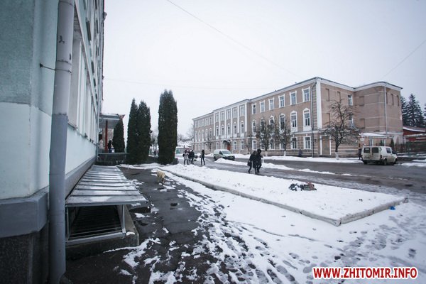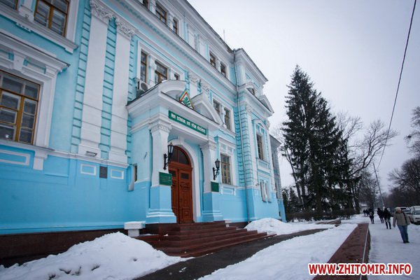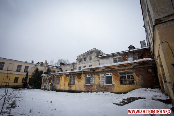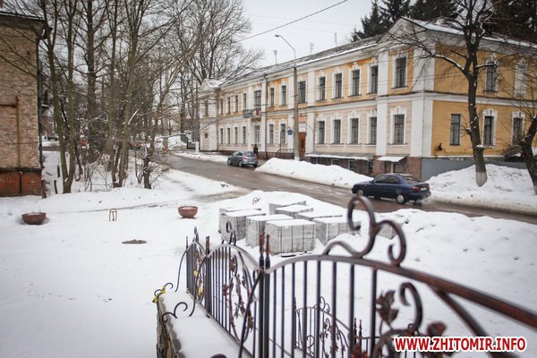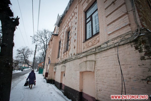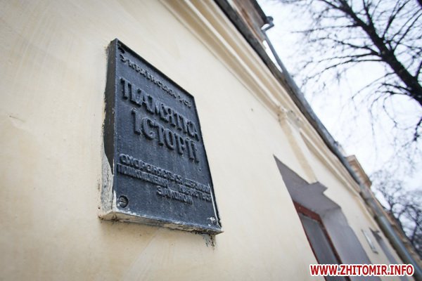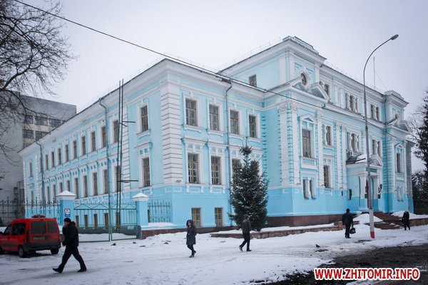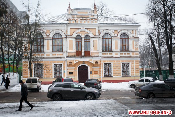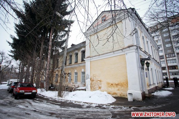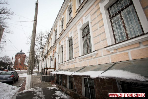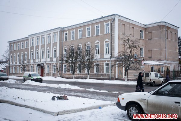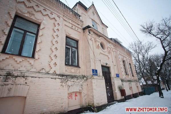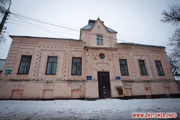 Здание строилось как школа еврейских учителей, познее здесь размещалась мужская гимназия. Дом построен в XIX ст. Сейчас здесь - биологический факультет Житомирского госуниверситета.