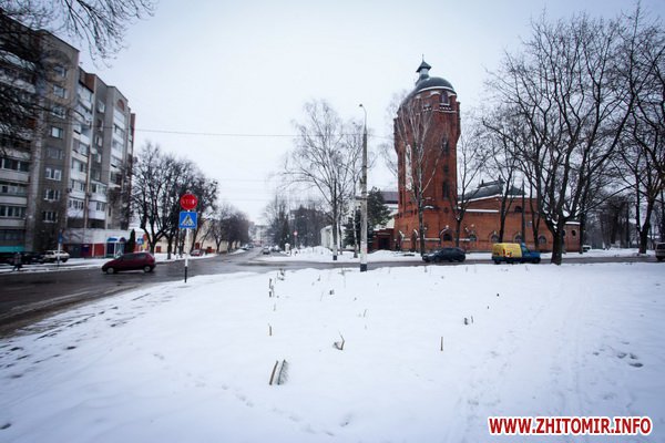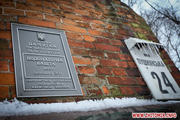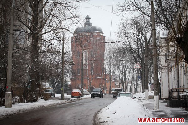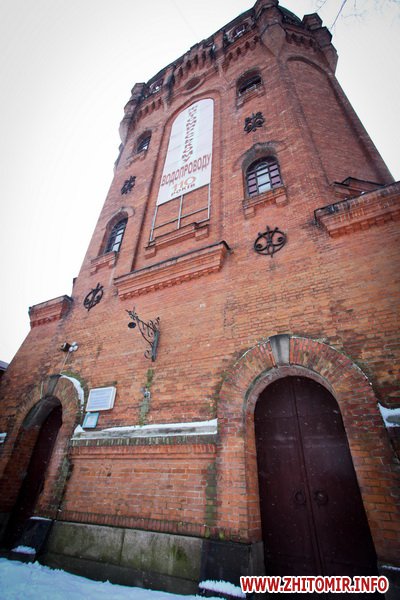 Водонапорная башня. Построена в 1889 году. Одна из самых красивых архитектурных достопримечательностей Житомира. Раньше на верхних этажах башни рассполагалось кафе.