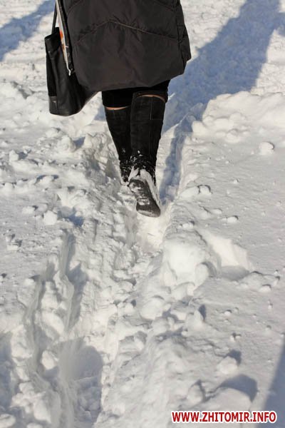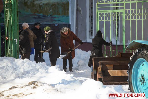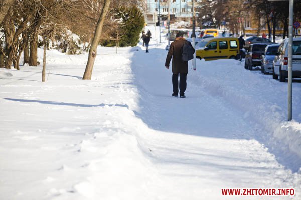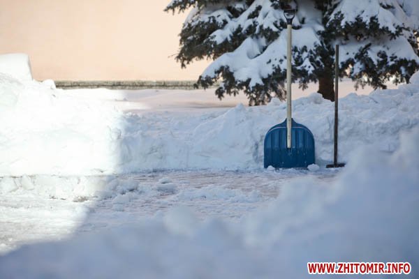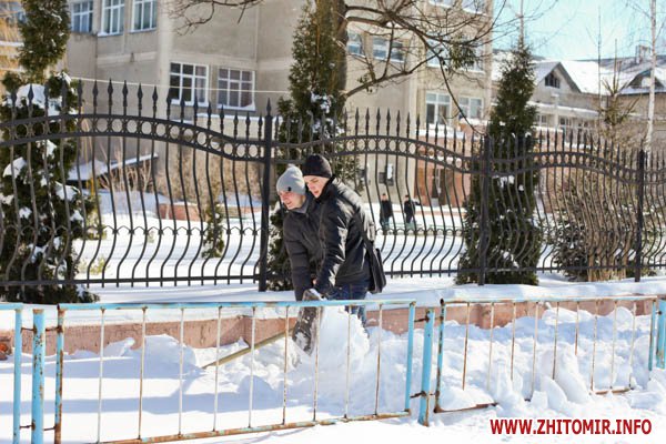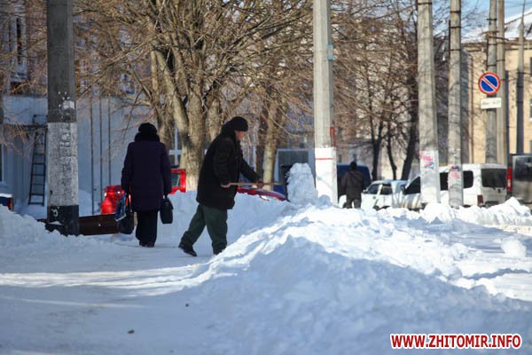 В Житомире 25 марта продолжают бороться с последствиями стихии - разгребают метровые сугробы и начали чистить тротуары.