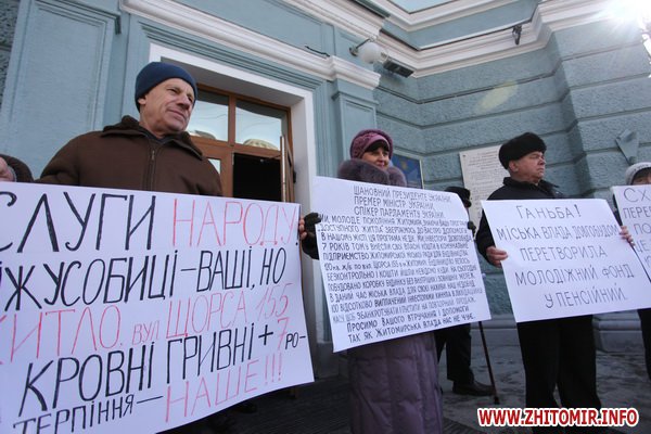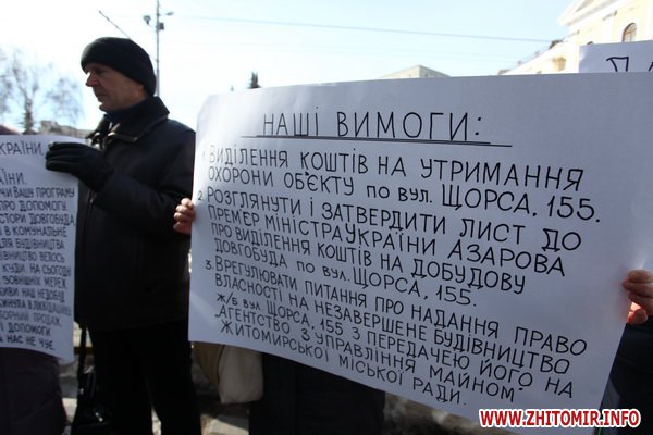 Около 40 инвесторов дома по улице Щорса, 155 с 9 утра пикетируют здание Житомирского горсовета, где сегодня состоится сессия.