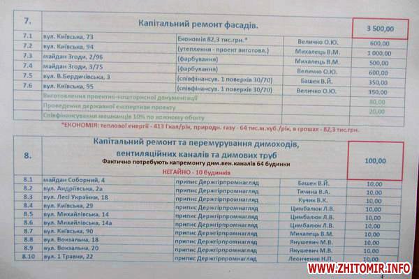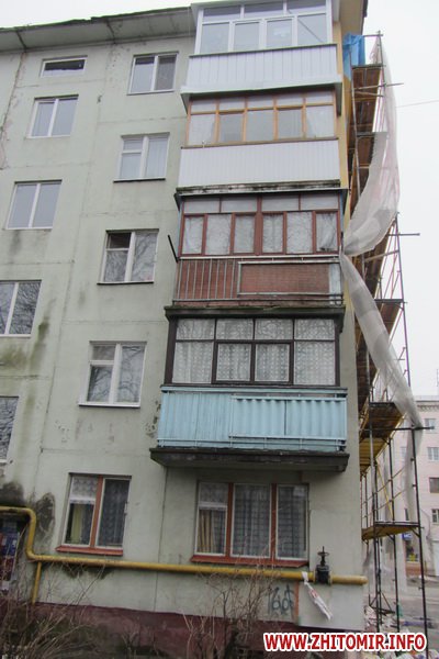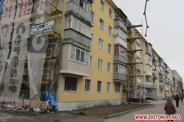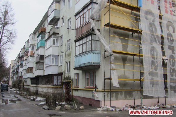 В ноябре 2012 года мэр Житомира Владимир Дебой отчитывался о начале утеплению фасада жилого дома, а на заседании исполкома горсовета 6 марта этого года уже говорили о завершенном проекте и «комплексном утеплении» дома.
