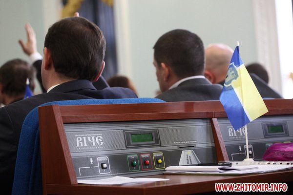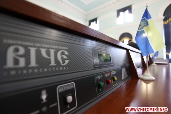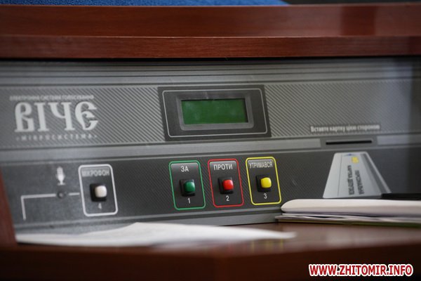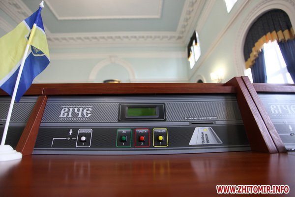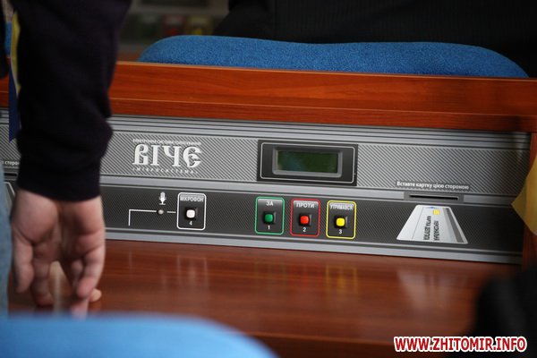 В сессионном зале Житомирского горсовета на рабочих местах депутатов установлена система электронного голосования «Віче».