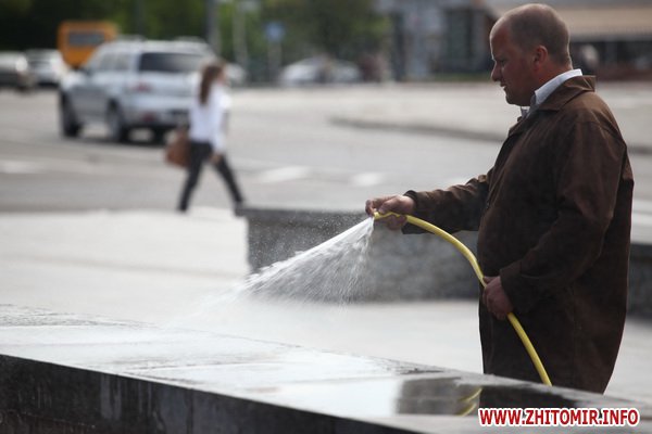 В Житомире проводят пробные запуски фонтанов. Официально фонтаны заработают 1 мая.