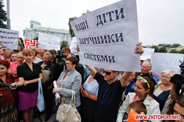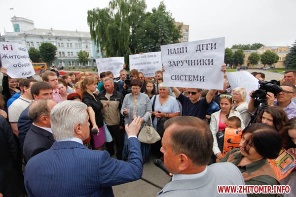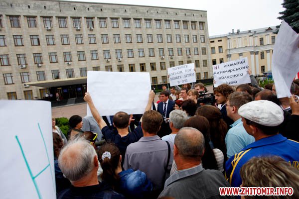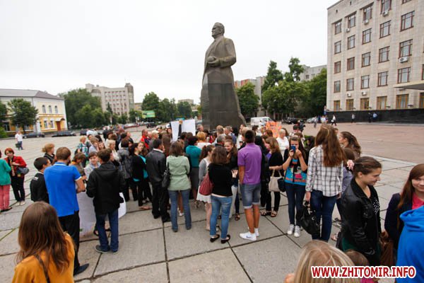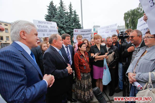Около 40 преподавателей Житомирского областного педагогического лицея, учеников и их родителей вышли под стены областного совета 12 июня, чтобы опротестовать закрытие учебного заведения.