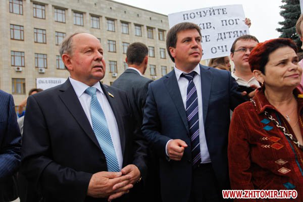 Во время митинга к людям вышли народные депутаты Геннадий Зубко и Владимир Литвин, губернатор Сергей Рыжук и председатель областного совета Иосиф Запаловский.