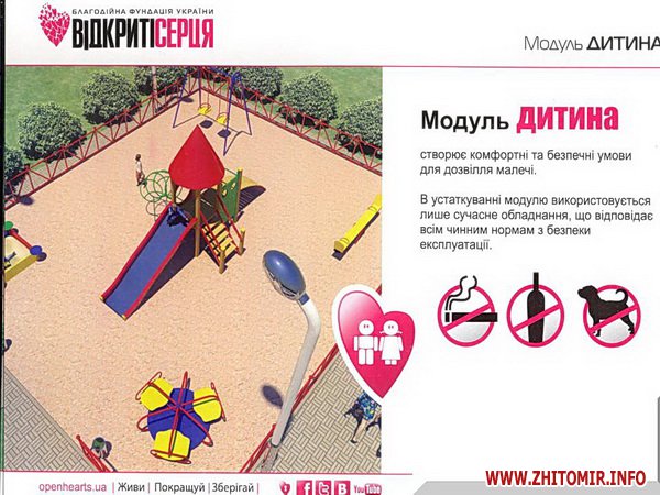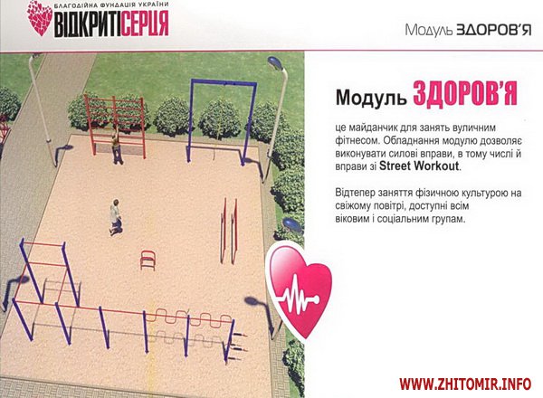 Проект, презентований благодійною фундацією «Відкриті серця», передбачає розподіл площадки біля Мистецьких воріт на 2-4 функціональні модулі для відпочинку дітей, дозвілля, заняття спортом та здоров’я.