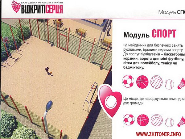 Пограти в баскетбол, міні-футбол, волейбол, теніс чи бадмінтон можна буде на модулі «Спорт». Модуль «Дитина» передбачає створення комфортних та безпечних умов для дозвілля дітей.