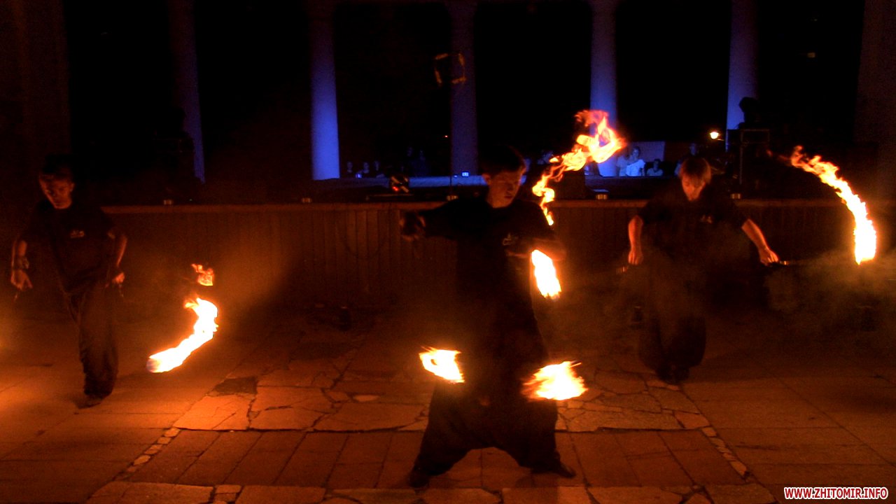Вогняне шоу подарували глядачам учасники житомирської фаєр-студії «ДІМ СОНЦЯ». Сольні, синхронні та колективні номери, наповнені натхненням та оригінальною ідеєю, були виконані на високому професійному рівні.