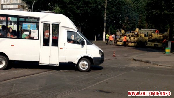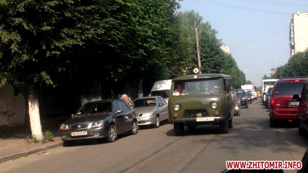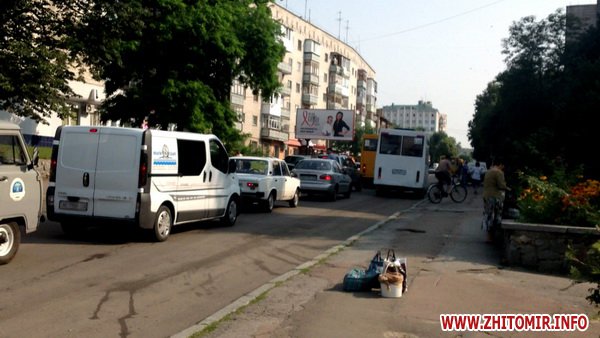 В Житомире в утренний «час пик» 10 июля из-за ремонта дороги практически было заблокировано движение транспорта на одной из центральных улиц города.