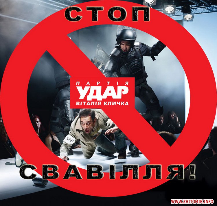 З метою оперативного реагування та запобігання випадкам перевищення службових повноважень працівниками силових структур Житомирська обласна організація політичної партії «УДАР Віталія Кличка» в рамках Всеукраїнської акції «СТОП свавілля!» проводить моніторинг інформації щодо жертв міліцейського свавілля у регіонах, надає юридичну допомогу, сприяє потерпілим у написанні скарг до вищестоящих органів МВС, до органів прокуратури, до обласних державних адміністрацій з приводу зловживання службовим становищем працівниками міліції (із зазначенням конкретних прізвищ і посад) та контролює проходження справ.
