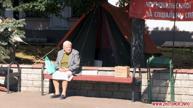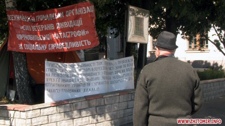 Близько півсотні людей вийшли 28 серпня під міську раду Коростеня з акцією протесту. Вони не згодні з рішенням Національної комісії радіаційного захисту населення України, яким передбачається ліквідація частини зон постраждалих внаслідок Чорнобильської аварії.