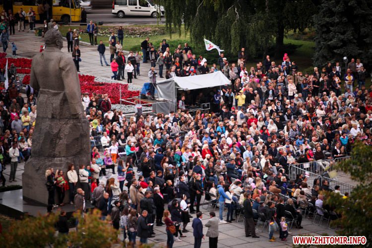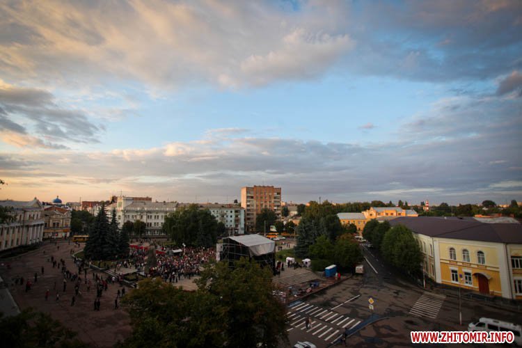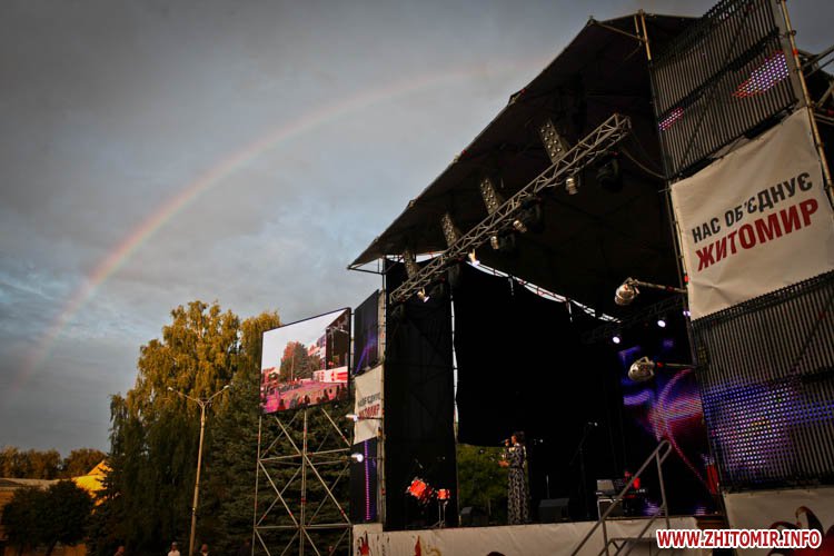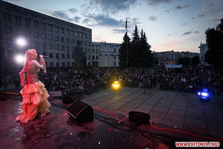 Дождь, который двое суток заливал Житомир не помешал проведению праздника, вечером было сухо и солнечно. На сцене установленной на площади Королева выступили несколько исполнителей, которые играли музыку разных стилей.