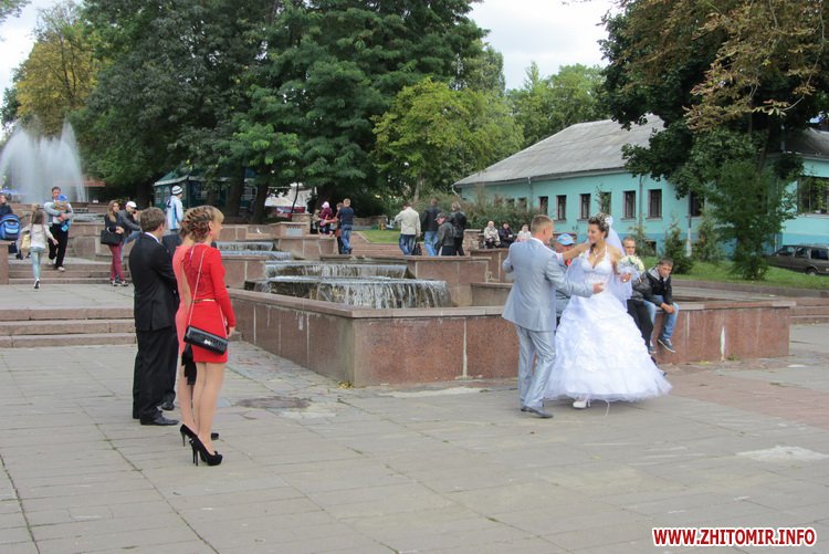 Ну и традиционно в субботу в городском парке проводят фотосессии молодожены.
