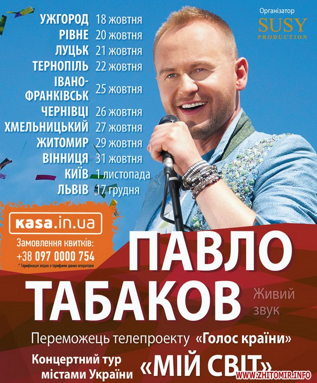 Квитки на концерти Павла Табакова «Мій світ» можна замовити на сайті kasa.in.ua та за номерами телефонів: 097-0000-754, 093-0000-754, 066-0000-754.