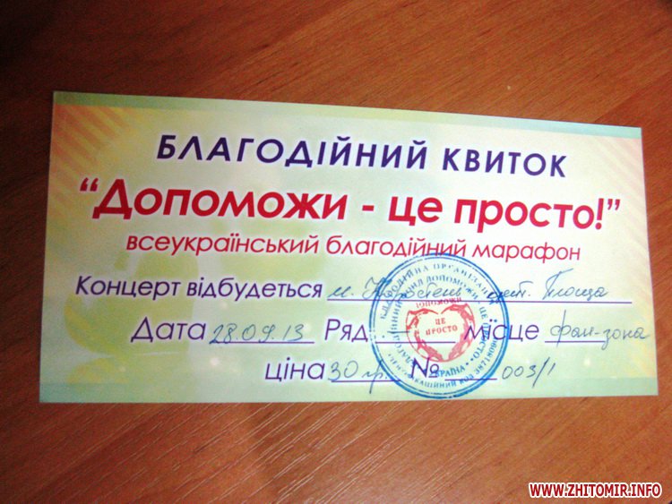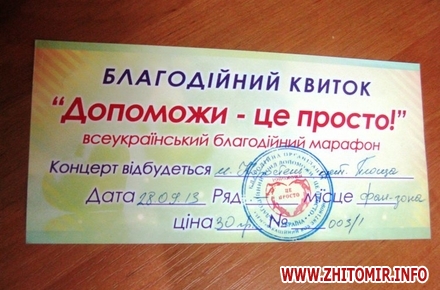 У Житомирі 29 вересня о 18 год. на майдані ім. С.П. Корольова відбудеться благодійний концерт "Допоможи - це просто!" за участю відомих українських гуртів та виконавців, спрямований на підтримку дітей-інвалідів, хворих на фенілкетонурію.