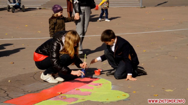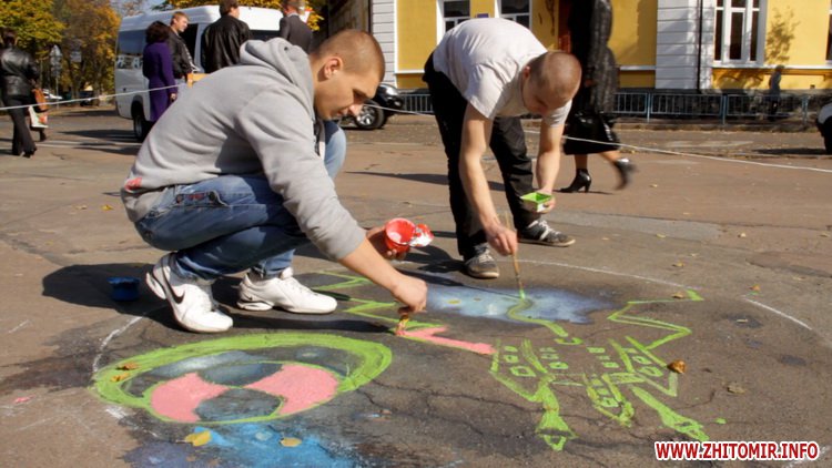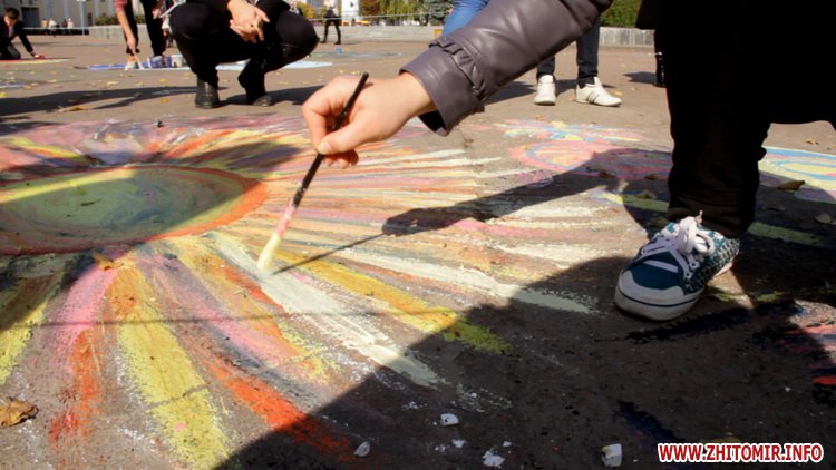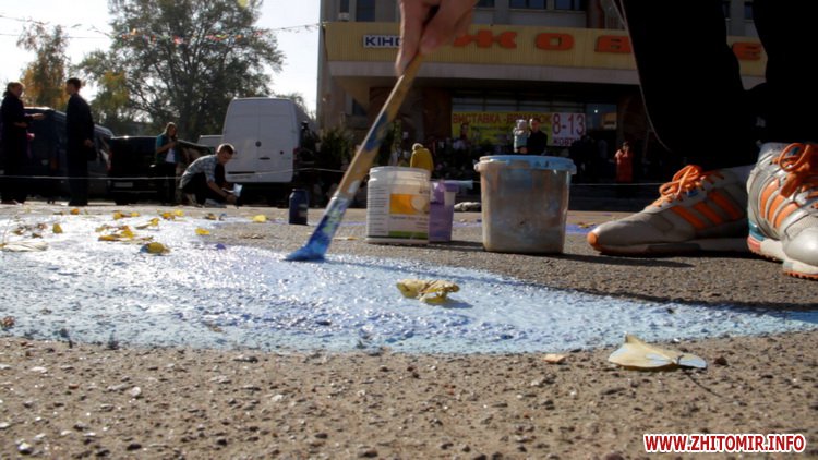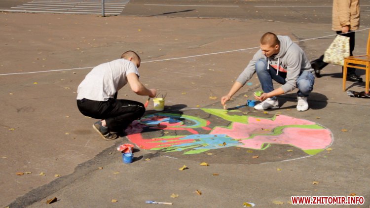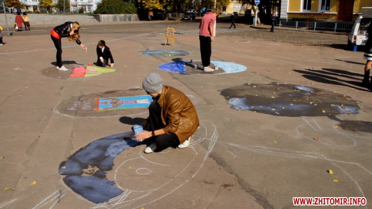 «Ми вирішили намалювати такий космічний малюнок і назвати його «Космічний мікс». Ця акція проводиться з нагоди Всесвітнього тижня космосу. Таким чином ми вирішили запровадити таку традицію і відзначати це свято в нашому місті. І дуже символічно, що ми малюємо сьогодні неподалік від пам’ятника Корольову», - розповів керівник центру громадських ініціатив «Восьме небо» Віктор Олександров.