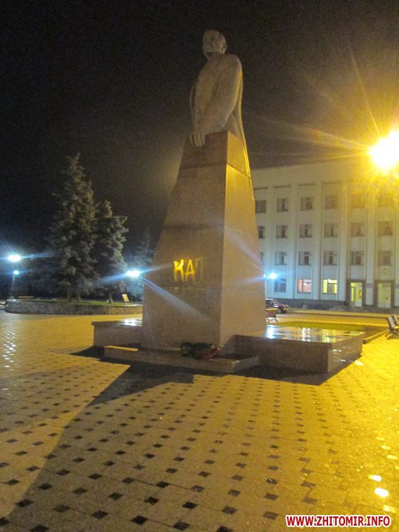 «Ленін – кат українського народу». Такий напис з’явився цієї ночі на пам’ятнику Леніну у центрі Бердичева.