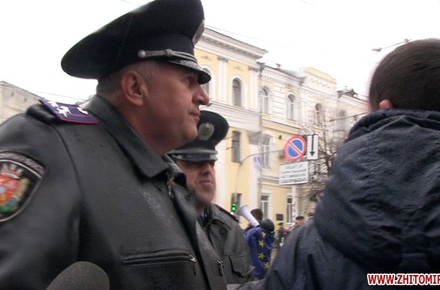 Напомним, что 29 ноября в Житомире проходила акция «Живая цепь до ЕС», участники которой хотели пройти на площадь Королева, но их не пустила милиция. Молодежь скандировала: «Милиция с народом!», а начальник управления общественной безопасности УМВД Юрий Демяненко просил студентов подождать, пока на площади закончатся религиозные мероприятия.