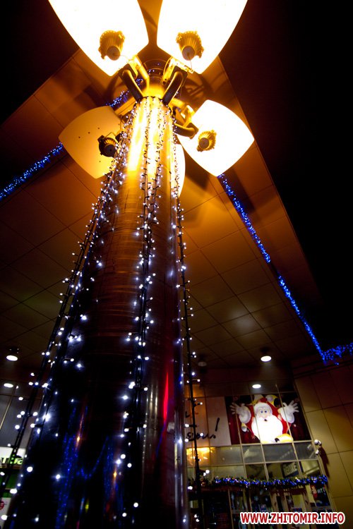 Житомир підготувався до зустрічі Нового 2014 року: для створення святкової атмосфери підприємства та організацій прикрасили фасади своїх офісів яскравою новорічною ілюмінацією. Різнокольоровими вогниками гірлянд замерехтіли не лише ялинки поблизу будівель, а й інші дерева.