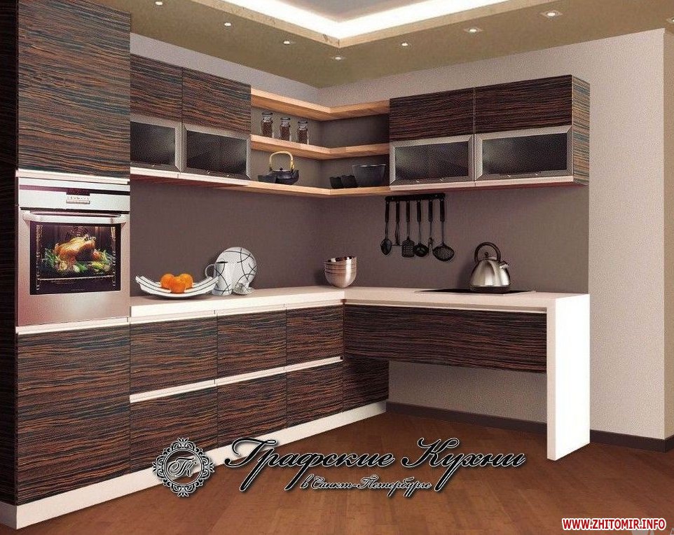 Угловые кухни, которые производит компания «Графские кухни», проектируются по размерам помещения и под общий стиль квартиры заказчика. Благодаря «Г»-образной форме они прекрасно подходят как для маленьких, так и для больших кухонь. Если говорить о функциональности и практичности, то именно угловые кухни являются наиболее оптимальным вариантом. Правильно спроектированная мебель позволит зрительно увеличить пространство небольшой кухни. Для удобства можно использовать вращающие полки, которые значительно сэкономят место. Компания предлагает широкий выбор материалов для изготовления и цветовых оттенков для оформления.