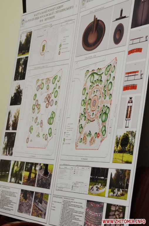 Ескізний проект «Капітальний ремонт скверу на розі вулиць Московської та Лятошинського в м. Житомирі», замовником якого є управління комунального господарства, розглянули під час засідання архітектурно-містобудівної ради при управлінні містобудування, архітектури та дизайну міського середовища міської ради.