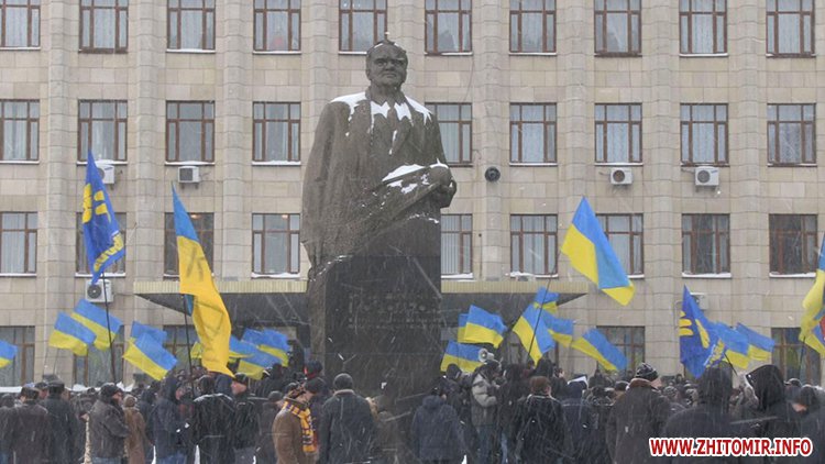 Згодом до пам’ятника Корольову приходить зо дві сотні євромайданівців. Між мітингарями здіймається перепалка.