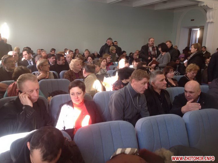 Як передає кореспондент Житомир.info, у сесійній залі – аншлаг: усі місця зайняті, місцеві депутати та журналісти змушені стояти під стіною.