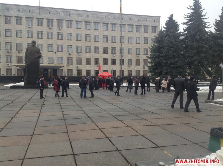 13 лютого на майдані Корольова зібралося кілька десятків житомирян, які відгукнулися на заклик партії «УДАР» провести «попереджувальний» страйк.