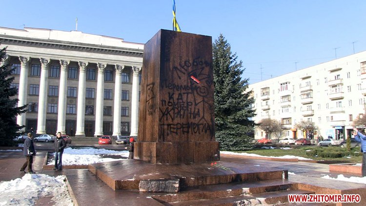 Как сообщал Житомир.info, 21 февраля около часа ночи в Житомире упал с постамента гранитный памятник Ленину на площади Соборной.