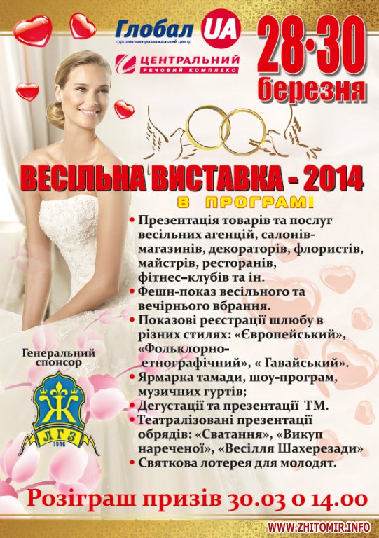 З 28 по 30 березня у Житомирі відбудеться Весільна виставка, яку щороку з нетерпінням чекають молоді пари.