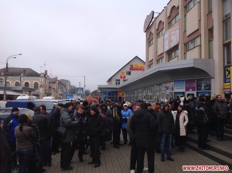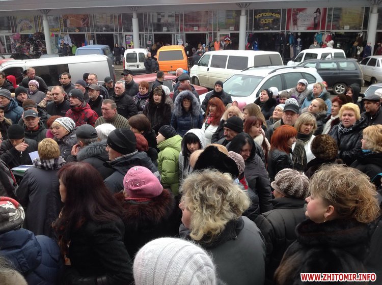 Вранці 4 березня близько двохсот підприємців зібралися на площі Житній ринок у Житомирі. Люди заблокували вхід до Торгівельного Центру, протестуючи проти підвищення їм орендної плати за приміщення.