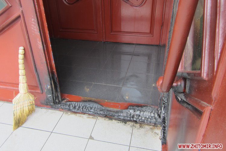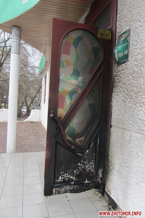 «5 марта в 00:08 поступило сообщение о пожаре в одном из кафе областного центра. О возгорании сообщили сотдурдники Госсулжбы охраны, которые приехали на срабатывание сигнализации в заведении. По прибытию пожарных к месту происшествия было установлено , что горят входные двери. Оперативными действиями возгорание было ликвидировано в течении 10 минут. Пожаром повреждены только входные двери. Погибших и травмированных в результате происшествия нет», - сообщили Житомир.info в Житомирском горотделе областного управления ГСЧС.