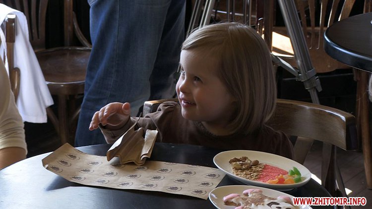 Вмостившись за столиками кав’ярні, дітлахи разом з мамами з нетерпінням чекають, коли розпочнеться майстер-клас. Благодійний марафон «Я такий, як ти» у Житомирі проводять вперше, щоб допомогти дітям із синдромом Дауна. Сьогодні дітвора власноруч зможе приготувати шоколадні цукерки.
