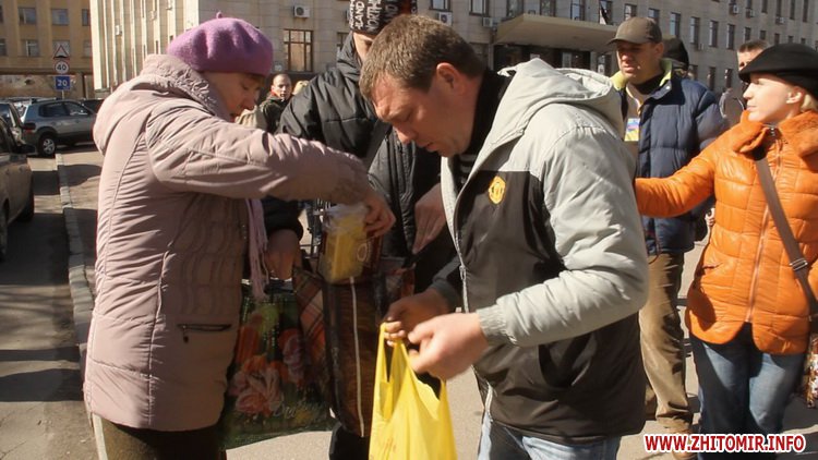 Смаколики та періодику для українських військовослужбовців житомирянки принесли на майдан Корольова 18 березня. Почули у новинах, що волонтери відправляють вантажівку на південь і одразу кинулися збирати пакунки.