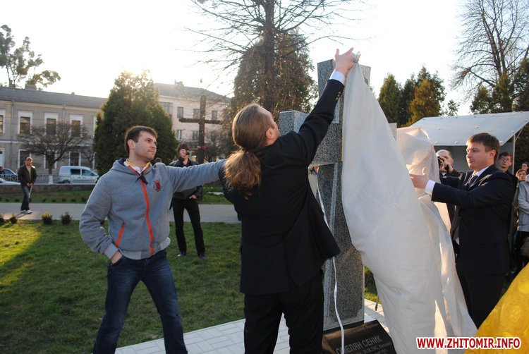 28 березня на території Свято-Преображенського Собору відбулося урочисте відкриття пам’ятного знаку борцям за волю України – Миколі Сціборському та Омеляну Сенику. Загалом, це перший монумент, який у Житомирі встановлено українським націоналістам.