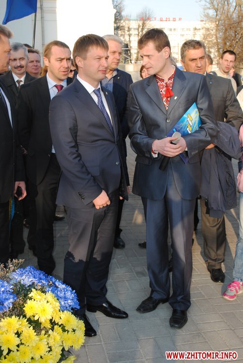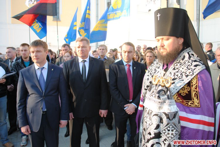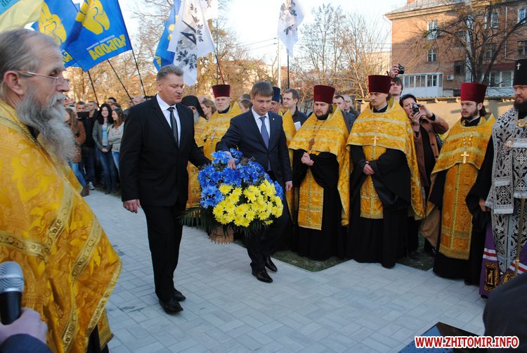 До церемонії відкриття пам’ятнику долучилися голова Житомирської облдержадміністрації Сидір Кізін, народні депутат України від ВО «Свобода» Ігор Мірошниченко та Олександр Мирний, представники міського та обласного осередків ВО «Свобода», науковці, краєзнавці, священнослужителі, журналісти та молодь.