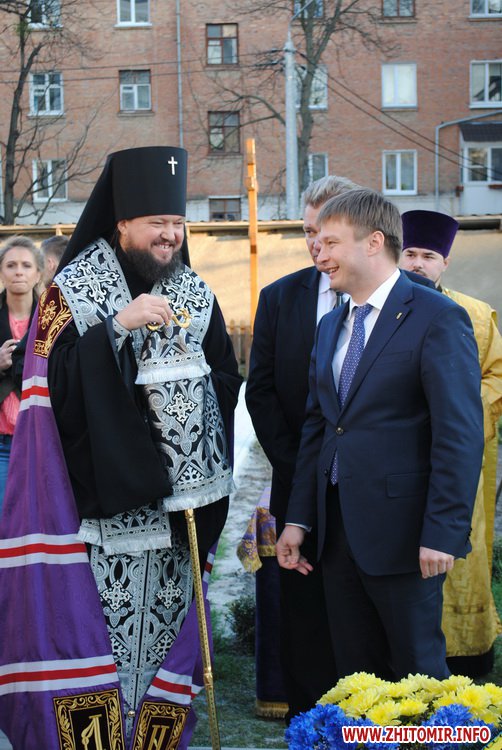 Відкриття пам’ятного хреста сьогодні є символічним, адже саме 28 березня 116 років тому народився ідеолог українського націоналізму, автор ґрунтовної державотворчої доктрини «Націократія», наш земляк Микола Сціборський. Власне, він і помер у Житомирі. Так, 30 серпня 1941 року разом зі своїм побратимом – Омеляном Сеником – він загинув від куль диверсанта. Обоє героїв були поховані саме у дворі Свято-Преображенського Собору.