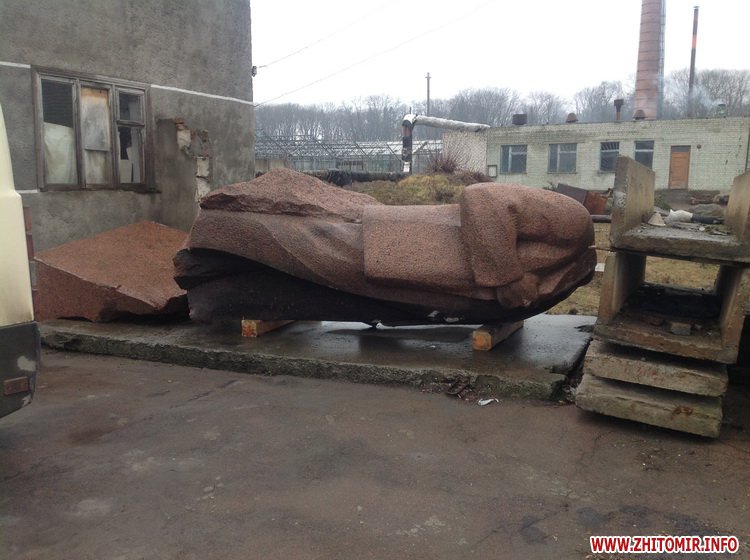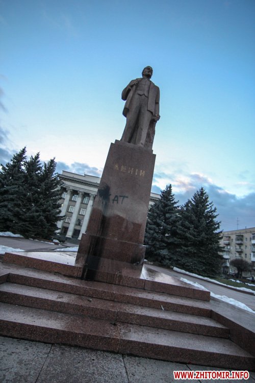Напомним, что 21 февраля около часа ночи в Житомире упал с постамента гранитный памятник Ленину на площади Соборной. Попытки «завалить» Ильича продолжались около трех часов и увенчались успехом только после того, как прикрепленный к памятнику трос потянул грузовик «Укрпочты».