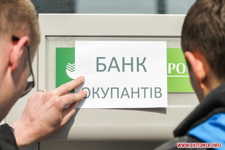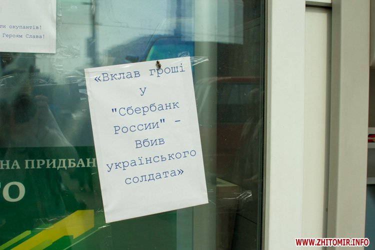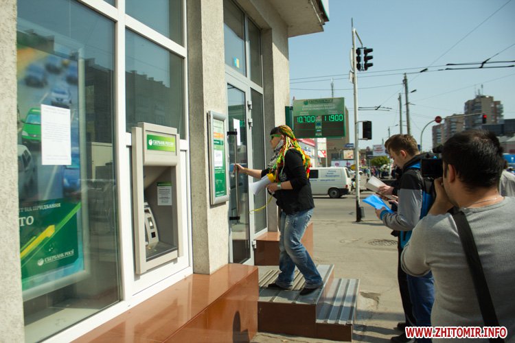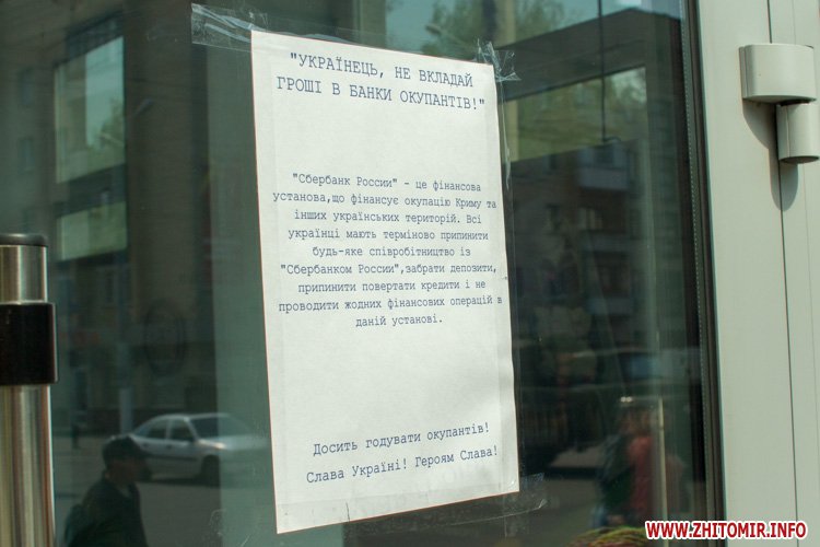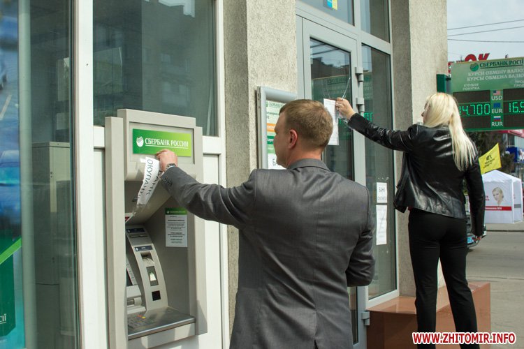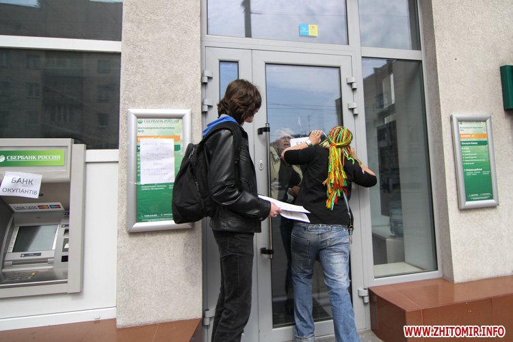 Близько десятка житомирян 24 квітня пікетували «Сбербанк России», що розташований на перехресті вулиць Київської та Східної.