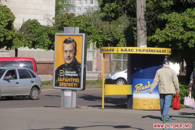 На улице Киевской в Житомире появились билборды и сити-лайты кандидата в президенты Анатолия Гриценко. Также в центре Житомира на сити-лайтах вывесили обновленную рекламу Петра Порошенко.