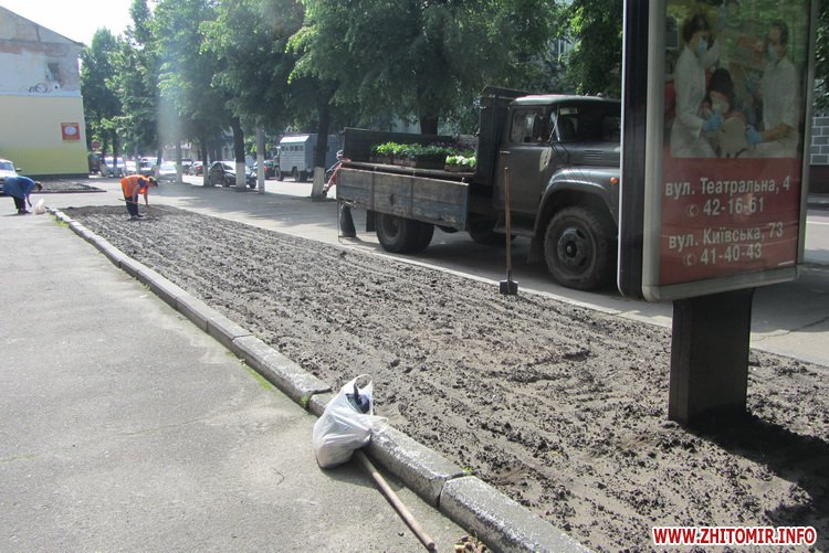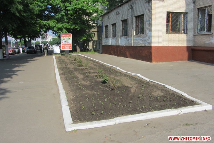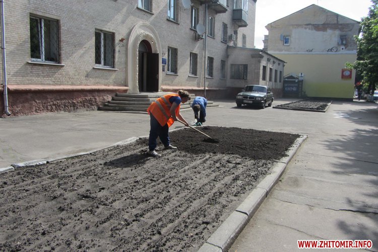 Утром 19 мая работницы КП «Зеленбуд» начали высаживать цветы на клумбах возле управления образования, на Большой Бердичевской.